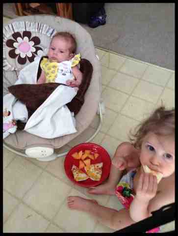 Ari and I were sitting at the kitchen table eating lunch and Eva was in her chair on the floor. All the sudden Ari got very excited and wanted to get down and then pointed at her bowl and wanted me to put it on the floor. She just wanted to sit with her sister. The love she has for Eva is amazing. She gets so happy when she sees the baby and always wants to talk and love on her. Makes me so happy.